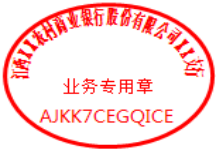 2.若为电子业务专用章,您可以使用业务识别码,通过我行柜面、手机银行渠道对电子印章真伪进行查询验证。具体样式如下: